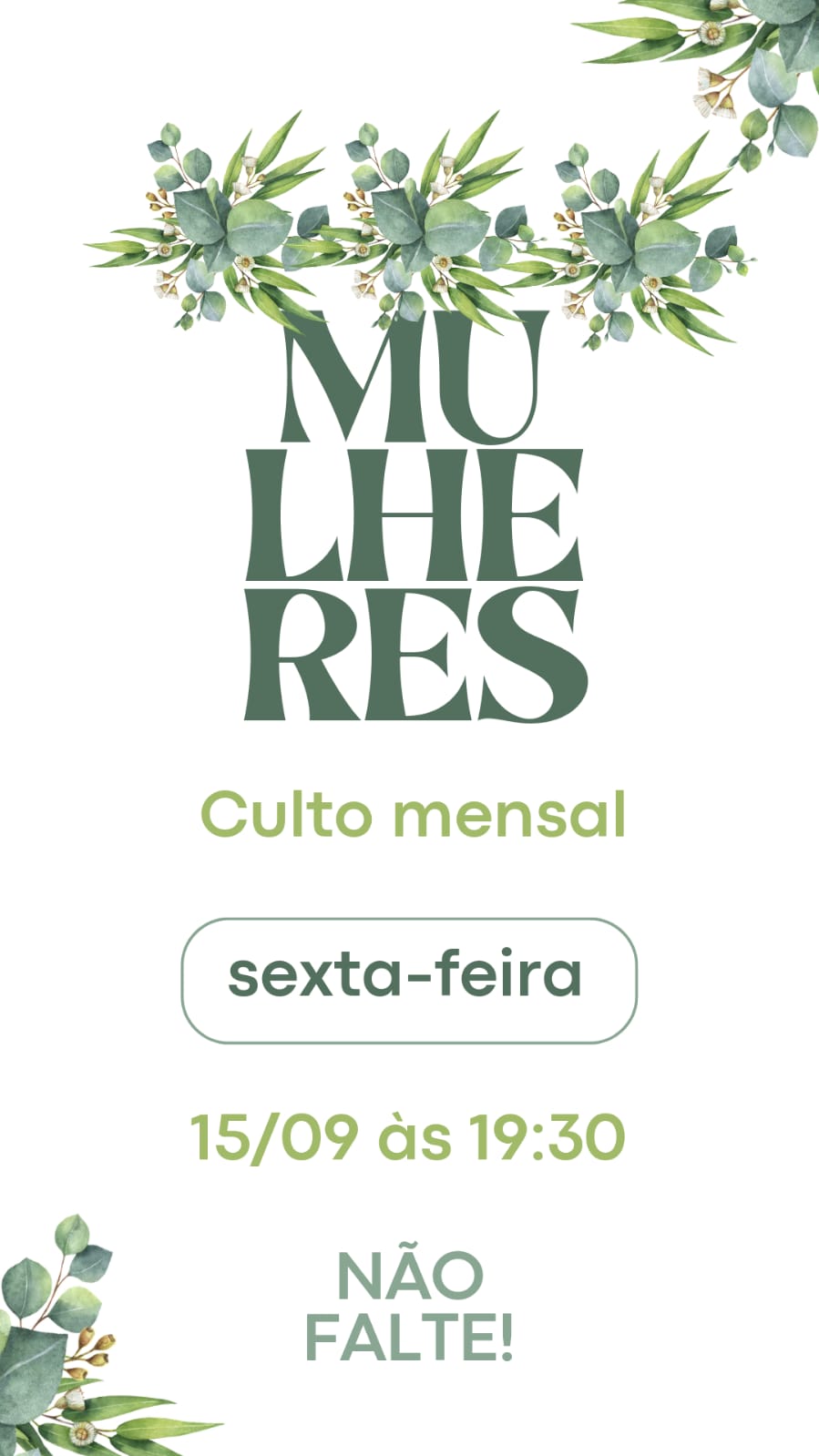 | 10 DOM 9h Escola Bíblica Dominical 12h Almoço Adolescentes 19h Culto Rede de Mulheres |